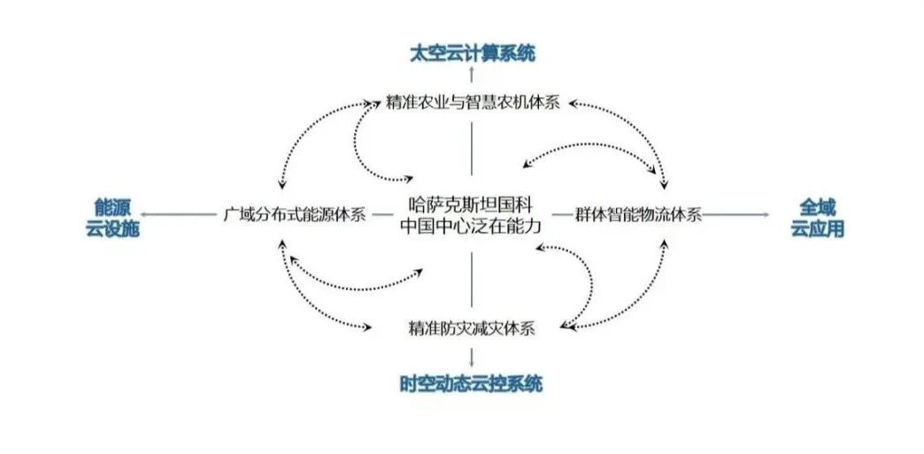 為實現技術到產業化的閉環,中心采用創新性的“1+2+6”架構:1個樞紐,科技轉移中心(哈薩克斯坦國家科學院總部)。2大核心設施:時空智能大模型(DeepBas), 提供強大的智能分析與決策支持;衛星云計算網絡,集成光伏自供電、相控陣雷達防御等前沿技術,保障系統高效穩定運行。6類關鍵應用:覆蓋自然災害預警、智慧物流、智慧農業/農機、環境污染預警監控、新能源管控、應急指揮系統。同時,通過專項團隊對接六大應用領域,確保技術有效轉化為解決實際問題的方案,形成從技術研發到產業轉化的完整閉環。